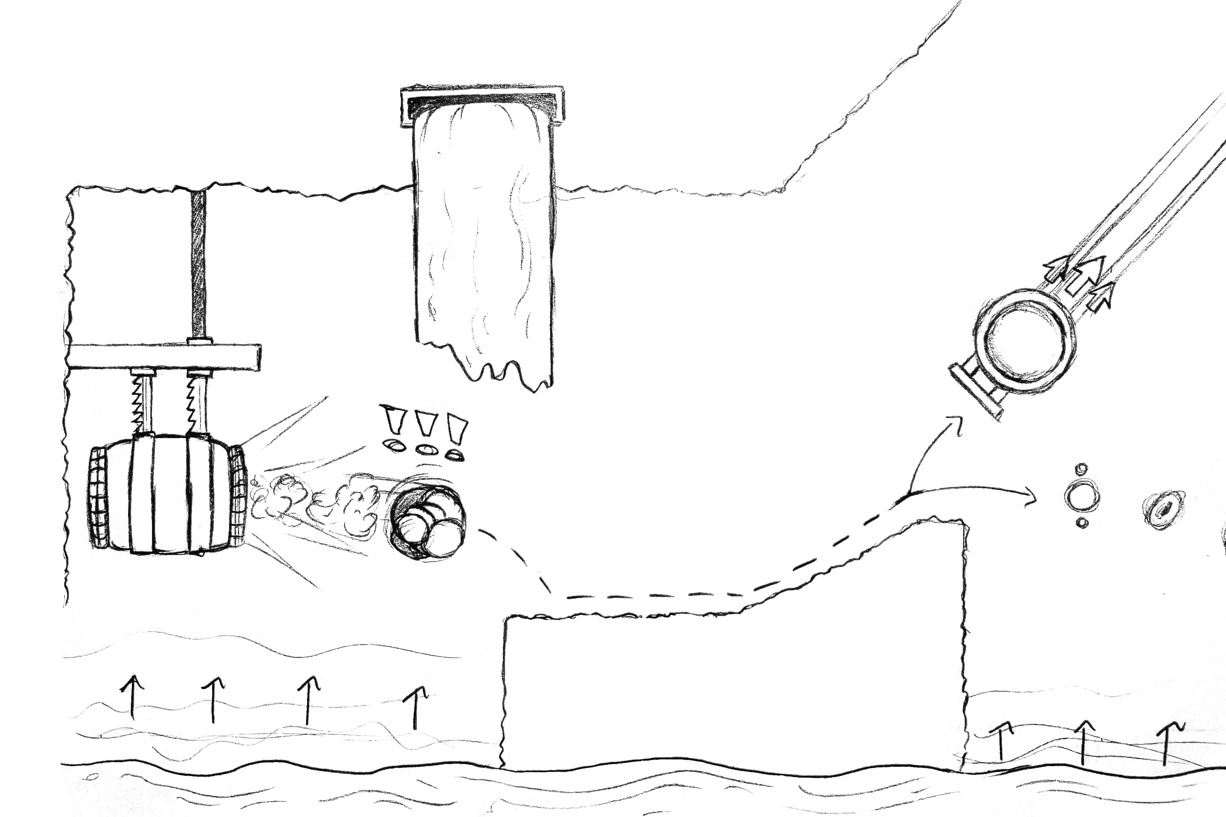 CAMERA & ACTION FRAMINGAs the environment and level design dictate the way players interact with the game, I placed a strong emphasis on the presentation and framing of the level. To do this I thought of ways to frame the action to focus directly on a chunk of the level to ensure players get a clear view of the space for them to work off of. To achieve this, I experimented with various camera systems through sketching and scripting. What I settled on was a node-based camera system with a high degree of control over framing and camera positioning.