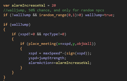 NPC DECIDE TO WALL JUMP Determines if NPC should wall jump, based on a check for a wall in front of the NPC, and a 50% chance of NPC deciding to wall jump.