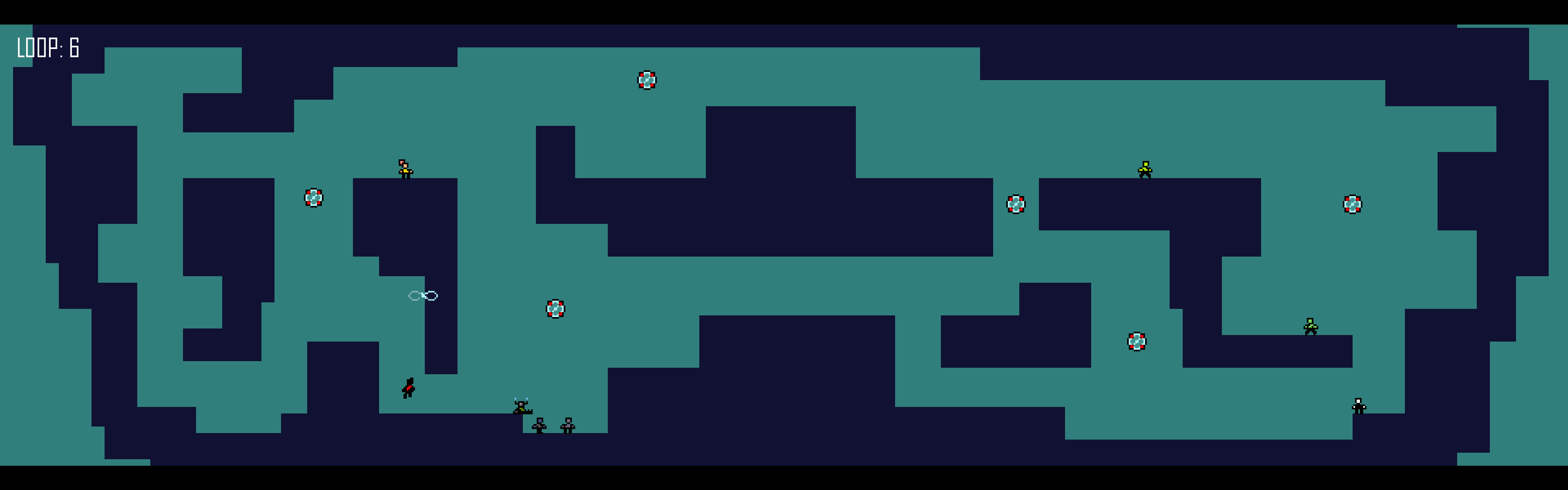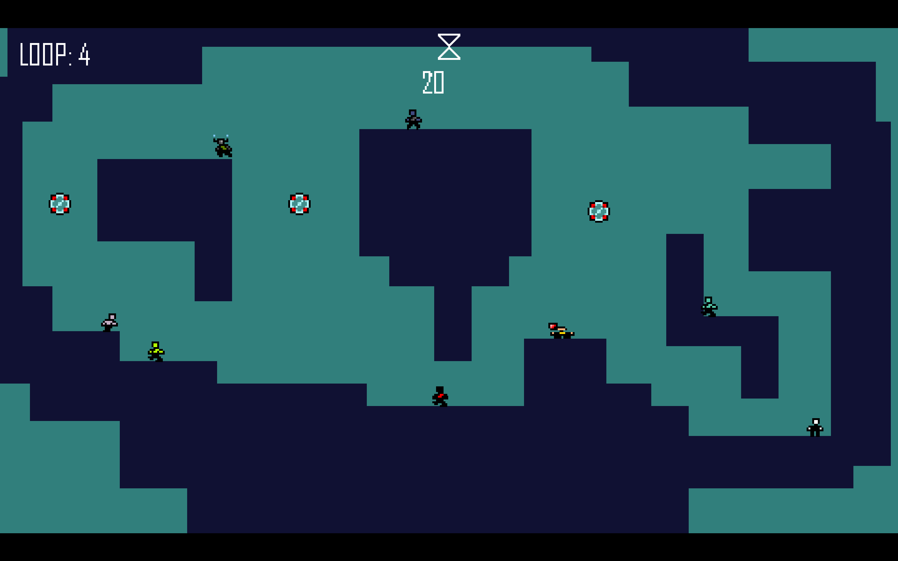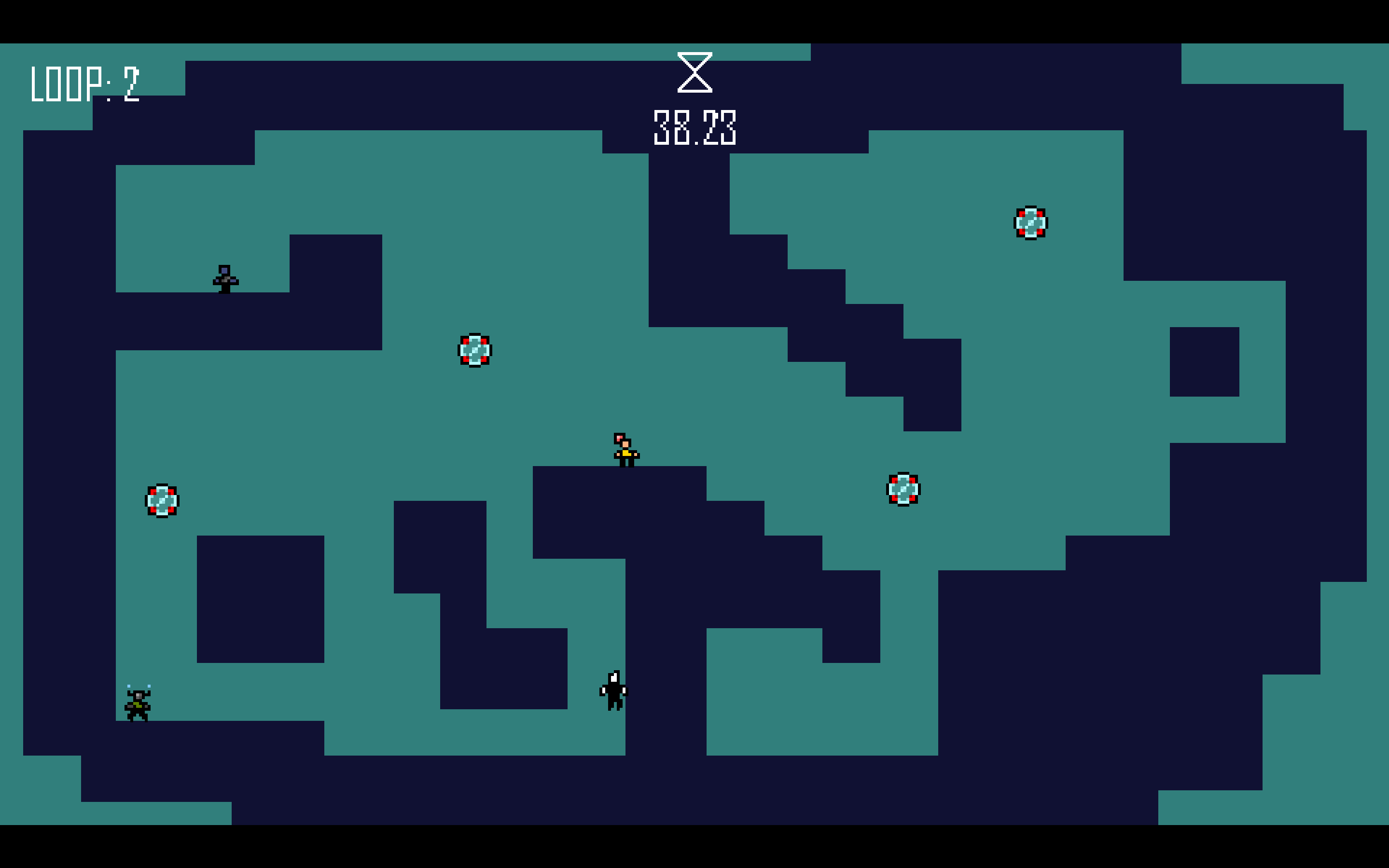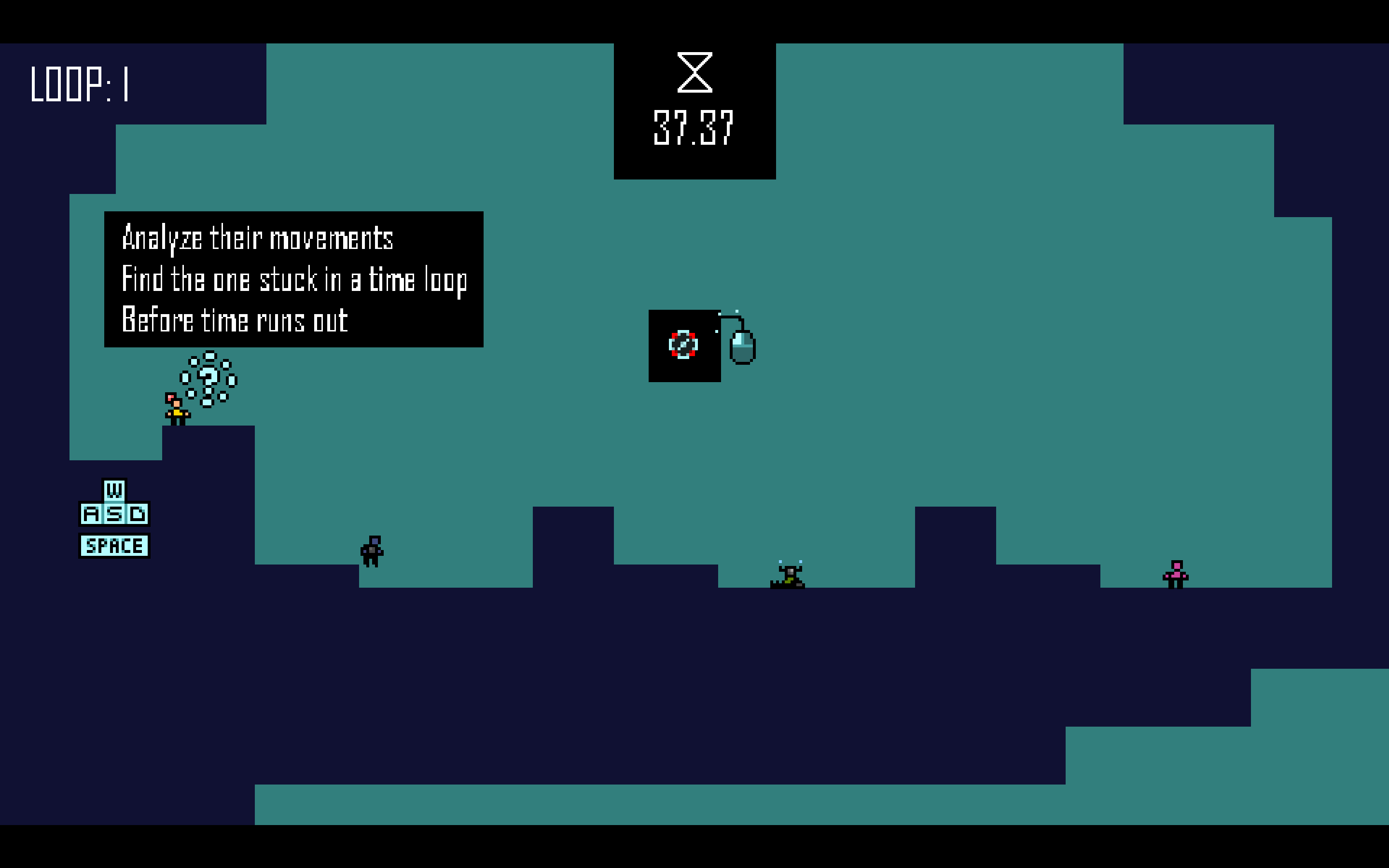 Stay In The Loop is a puzzle-platformer in which you are trapped in a time loop. You must spot the one NPC repeating their actions before the timer runs out, collapsing the loop.