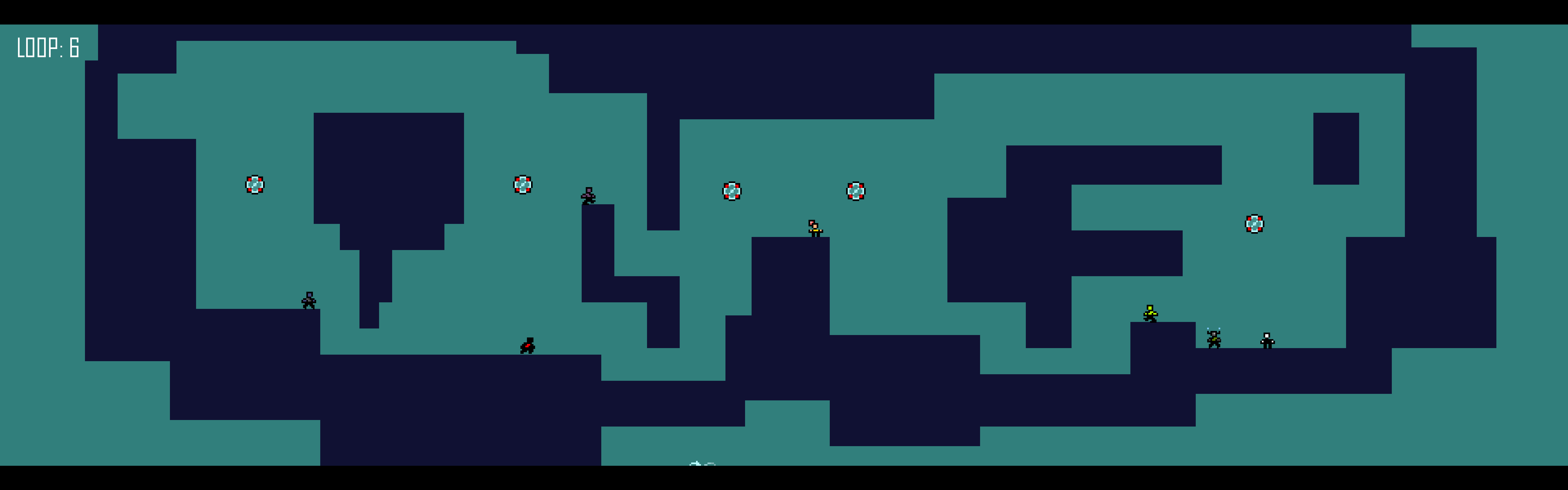Solo Project, 2024 GMTK Game Jam Software: Game Maker Studio 2, Paint.NET, Audacity Roles: Game Designer, Artist, Programmer, Level Designer, UI Designer Unique Systems: NPC Decision Making, Movement SystemStay In The Loop is an infinite high-score game where each loop loads a random preset map with NPCs, their number increasing each loop. NPCs use three behavior types: preset, random calm, and random energetic. With one always following a looping, predefined moveset. The minimalist UI keeps focus on tracking NPC movements.